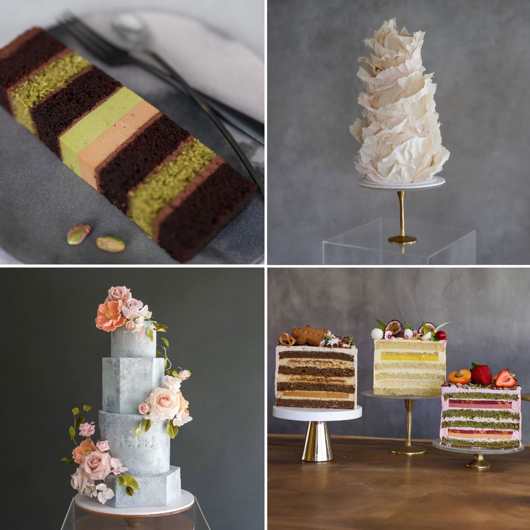 Learn five signature cakes built for weddings and light texture