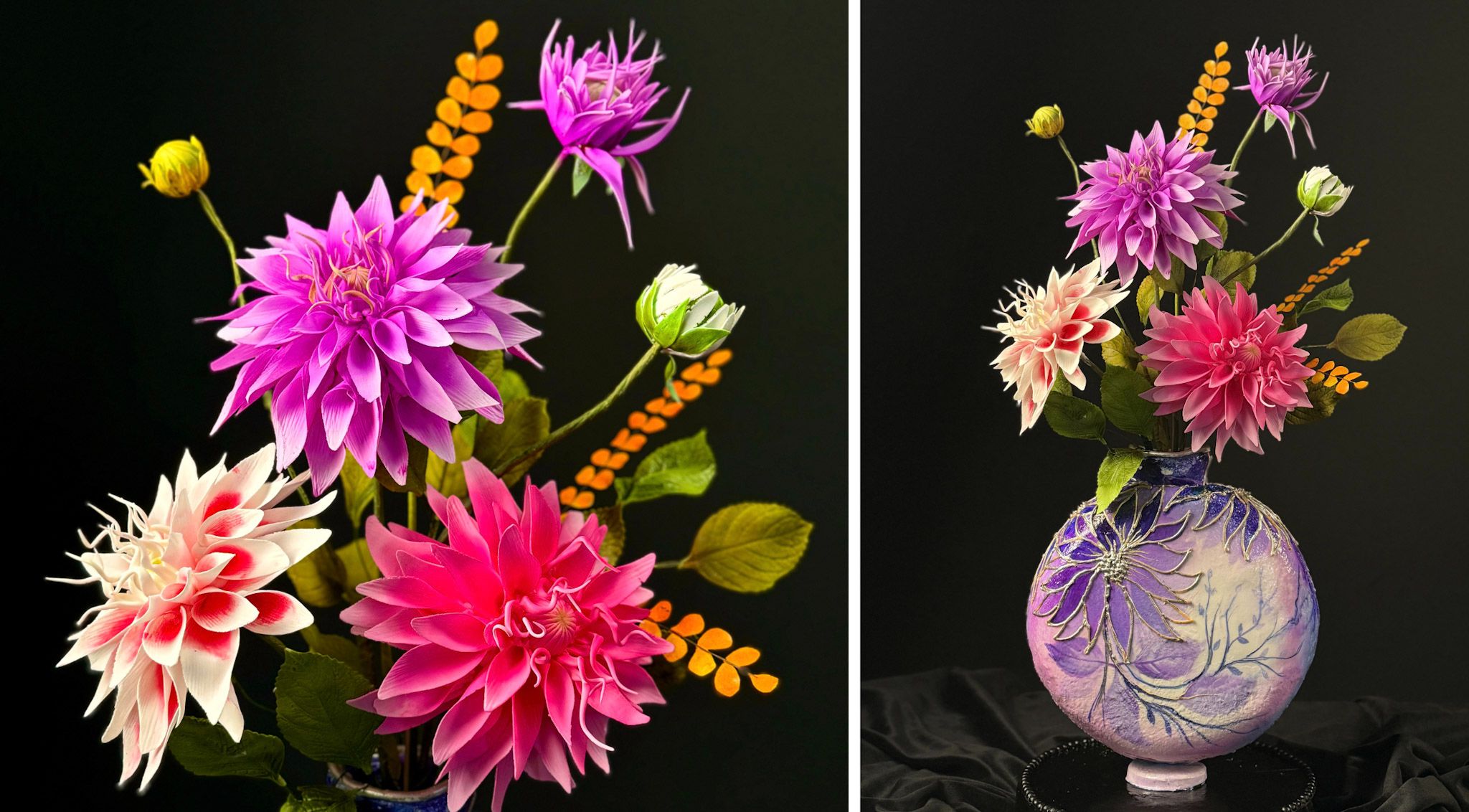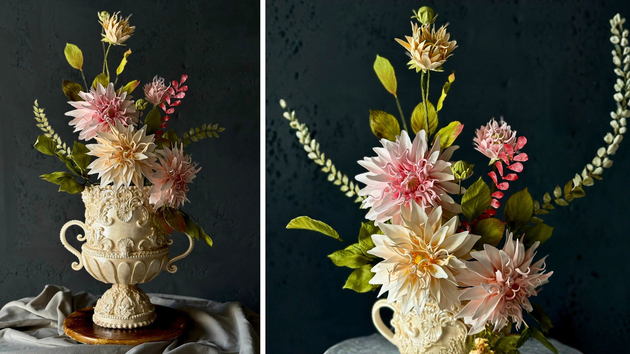 Create a stunning edible vase cake with lifelike sugar dahlia flowers