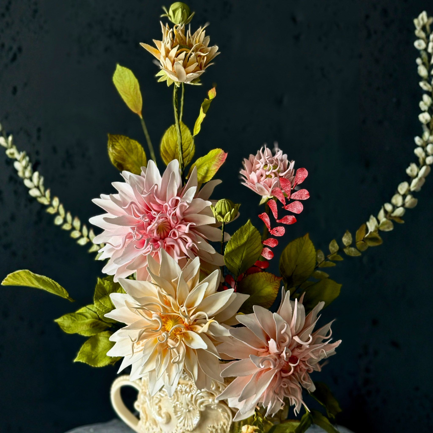 The Art of Edible Vase with Sugar Dahlia Flowers