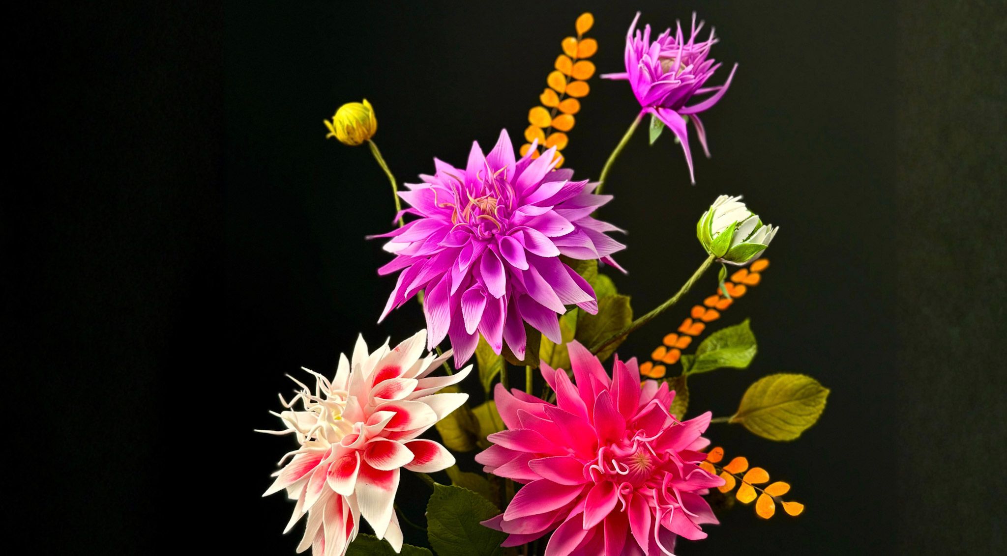 Make sugar dahlias, foliage, and accents